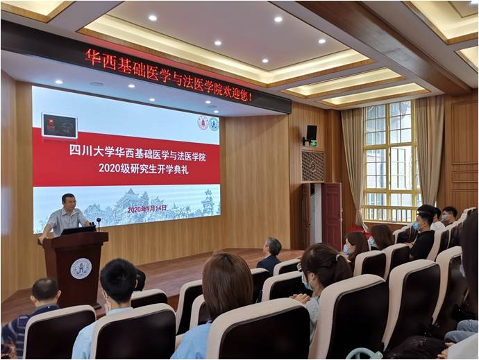李昌龙书记代表学院对2020级研究生表示热烈欢迎。他谈到研究生在校期间要勤奋刻苦,成功人士几乎都是格外勤奋的;每位同学都要有做好吃苦的思想准备,要克服自己的惰性,付出比别人更多的努力,这样一定会有更多的成长和收获。做实验是枯燥的、辛苦的,不要想着走捷径、弄虚作假。只有勤奋工作,持之以恒,才能积累成果,达到自己的人生高度。借助国家社会飞速发展和华西医学110周年庆的契机,努力提升自我,养成良好的学习、生活、工作习惯。研究生是祖国的未来,我们的研究生同学要带着责任感与使命感,做一个有目标、有情怀、有担当的新青年。