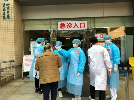 肖雨桢和彭蕾锡同学在华西医院开展疫情防控工作