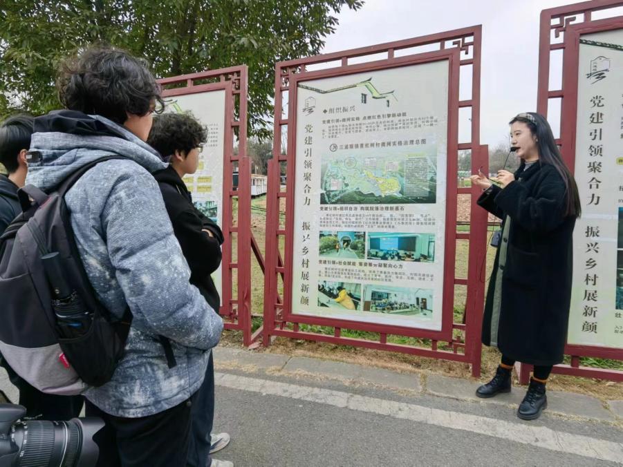 在三道堰镇青杠树村,在必赢官网优秀校友王森甲的带领下,同学们聆听社区讲解员讲述的乡村发展、民生改善的故事,通过图片介绍与实地参观,同学们见证了乡村振兴战略的实施给该村带来的变迁与发展,在参观中深入了解这个具有悠久历史的川西小镇,如何充分利用有利条件,打造休闲旅游产业,成为了四川省实施乡村振兴战略工作示范村以及“中国十大最美乡村之一”的光辉历程。