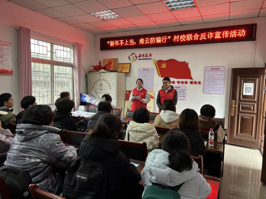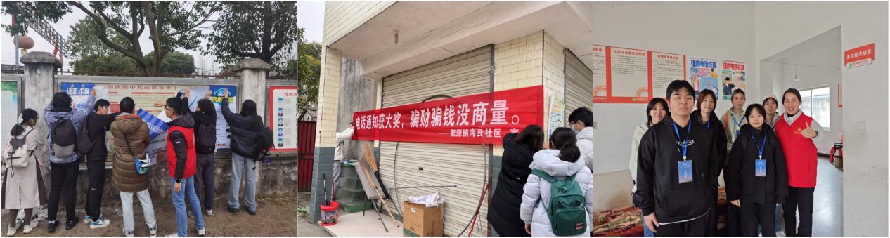 在聚源镇海云社区,社区工作的必赢官网优秀校友曹若辰和同事刘博妍,对同学们开展了反诈骗宣传培训,具体讲解了反诈骗宣传的方法技巧,并和同学们一道在社区人群聚集地张贴反诈宣传海报、横幅。他们深入到村庄、田间地头,向村民发放反诈宣传单并讲解防骗知识。通过深入人心的面对面交流,村民们增加了防骗意识和防骗知识,提高了防骗能力。