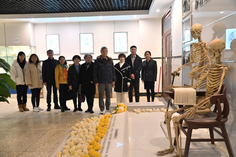 全体同学怀着崇敬的心情,聆听杨光曦老师介绍遗体捐献者王永贵老师和杨振华老师的生平事迹。作为华西医大解剖系的奠基人、王永贵教授一生热爱解剖学教育事业,治学严谨、无私奉献。他在80多岁高龄时仍亲自到解剖室与研究生一起动手操作。遵从他的遗嘱,除自身遗体捐赠给母校外,同时还有8岁因病去世的二女儿和爱人遗体也相继捐赠给学校。