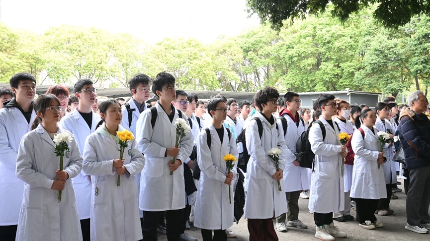 本次活动不仅仅是一场解剖课开课仪式,更是一次心灵的洗礼和升华,培养了对生命的敬畏和尊重,为未来的医学事业注入更多的情感和温度。同学们不仅为两位“无言良师”的故事而动容,更怀揣相同的志向,眼神柔情却初心不变,身着白衣而学医无悔,更加坚定了敬畏生命、关爱生命、甘于奉献、救死扶伤的医者担当。