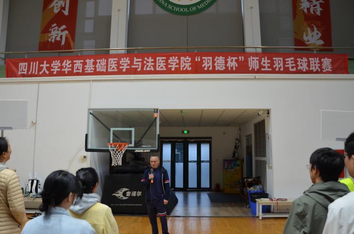 10月20日,学院“羽德杯”师生羽毛球联赛在华西校区羽毛球馆成功举办。学院院长李昌龙、副书记兼副院长罗海玻、副院长刘肖珩、工会主席黄莉出席了此次活动,学院教师、本科生、研究生和留学生共一百余位选手参赛,此次比赛由学院工会与研究生分会联合举办。