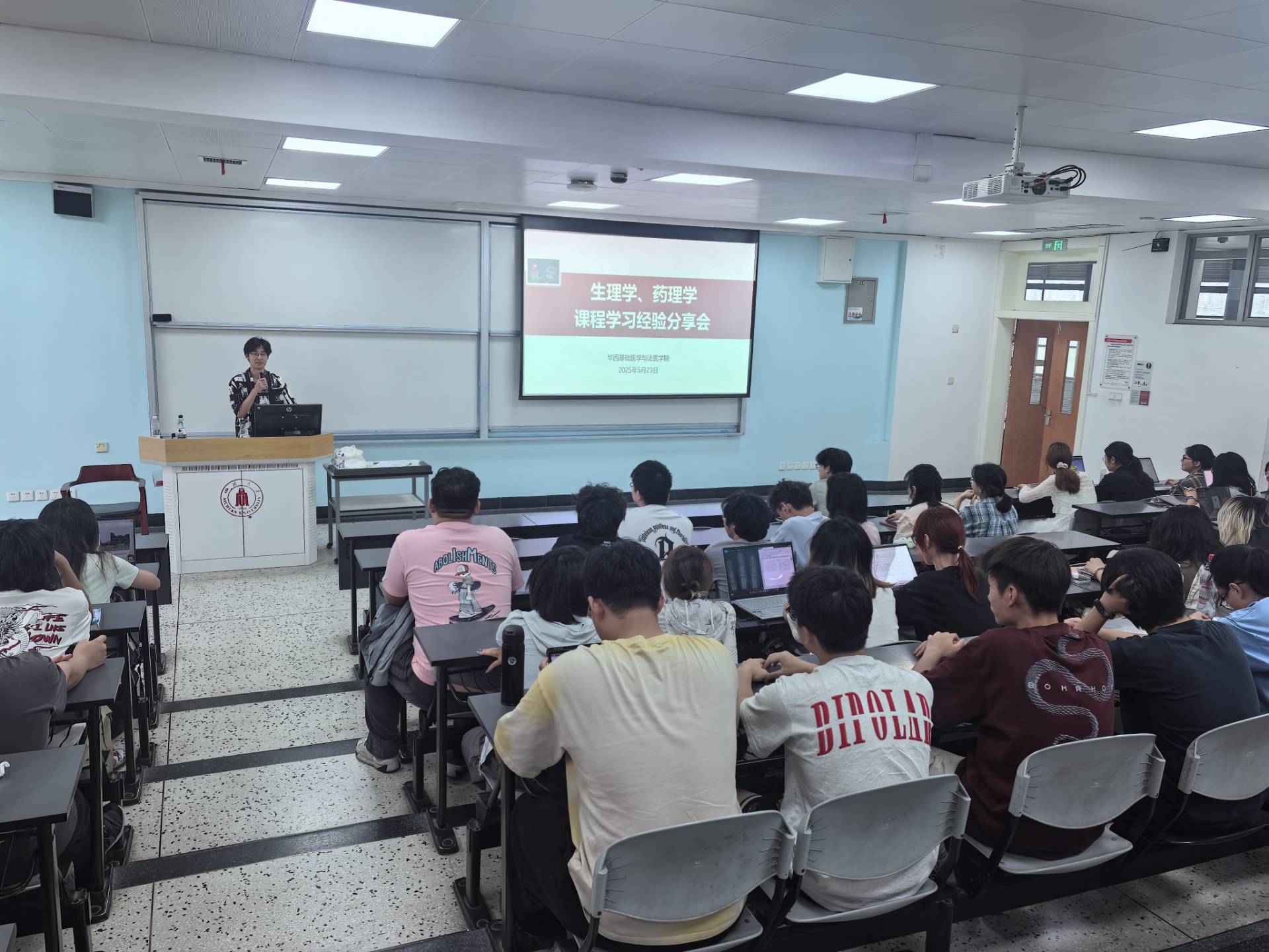 5月23日下午,必赢官网在江安校区一教B403教室,举办药学理、生理学课程学习经验分享会,特邀2022级法医学皮俊尧同学担任主讲,为2023级60余名同学系统梳理药理学与生理学两门核心课程的学习方法。