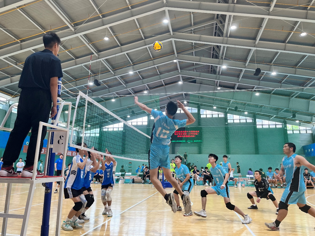 2022年7月2日至5日,湖北省第十六届运动会青少年体育类(大学生组)暨湖北省第十三届大学生运动会排球比赛甲组赛事在武汉大学卓尔体育馆举行。本次赛事由beat365英国官网网站刘良辉老师、李伦老师担任领队,黄江华老师和方银老师担任带队老师。