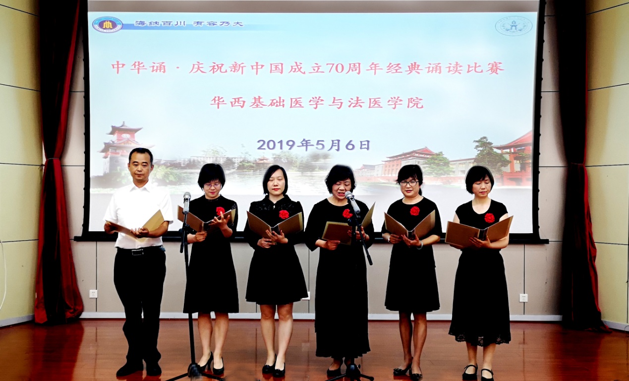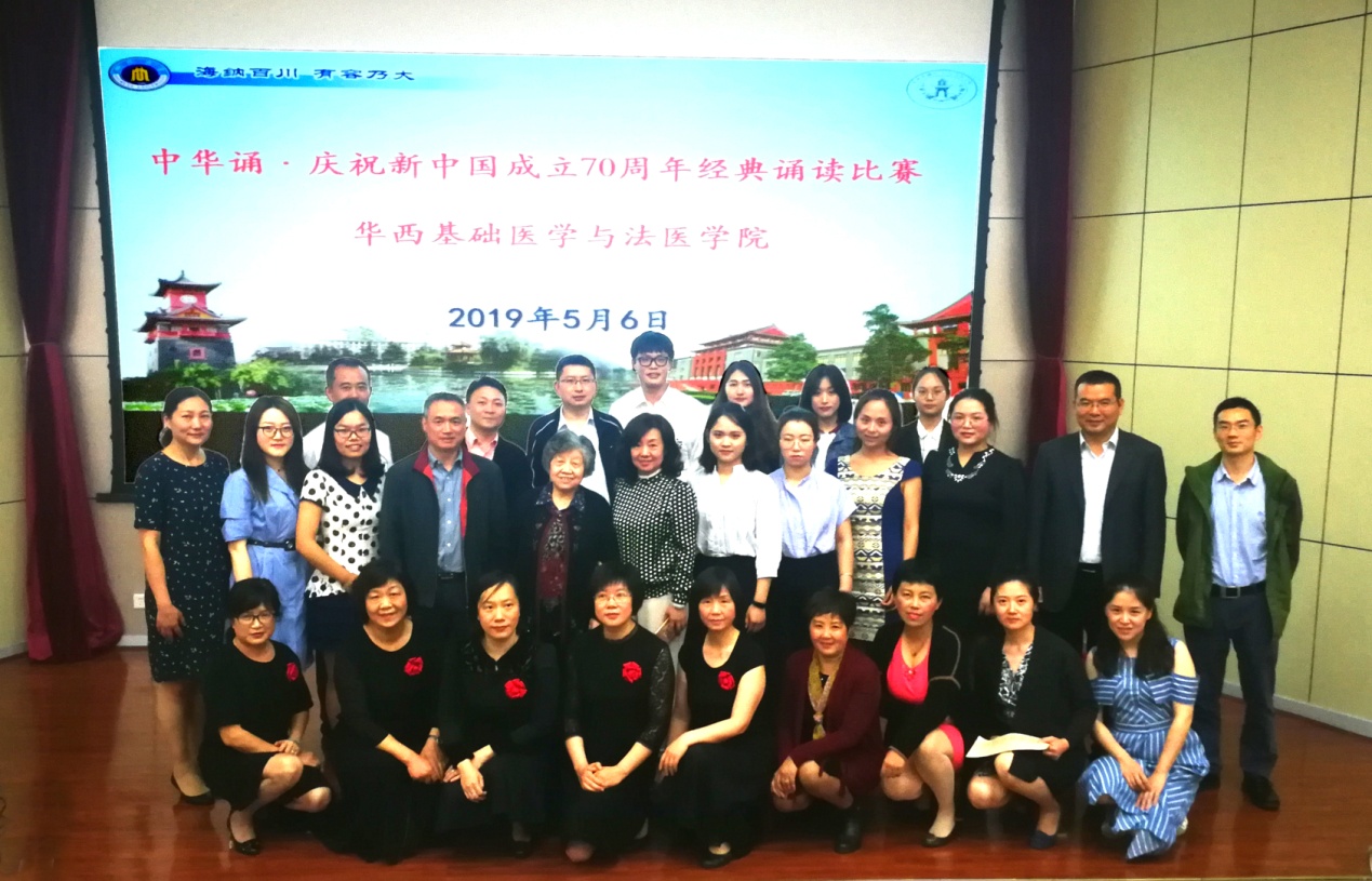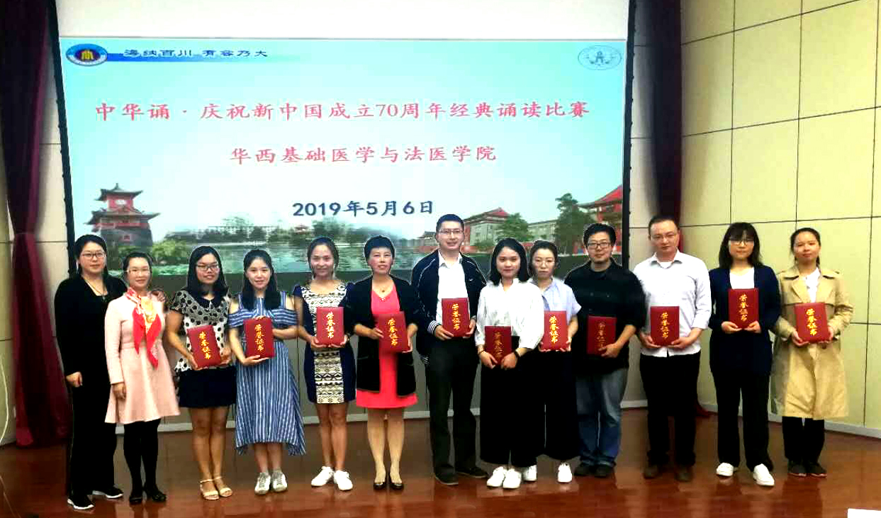 为了庆祝中华人民共和国成立70周年,必赢官网于2019年5月6日下午在华西逸夫楼报告厅举行了必赢线路检测3003no1“中华诵·庆祝新中国成立70周年经典诵读比赛”,本次比赛吸引了200名师生观看。比赛邀请了学院党委副书记郭晓伟同志、文学与新闻学院朱姝老师、马克思主义学院赵雪琴教授、人事处语委办公室副主任侯洁老师、学院组织胚胎学及神经生物学教研室主任周雪教授担任评委,来自学院各单位19个作品参加了比赛,表达了对祖国的热爱。