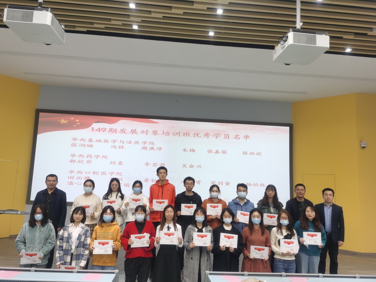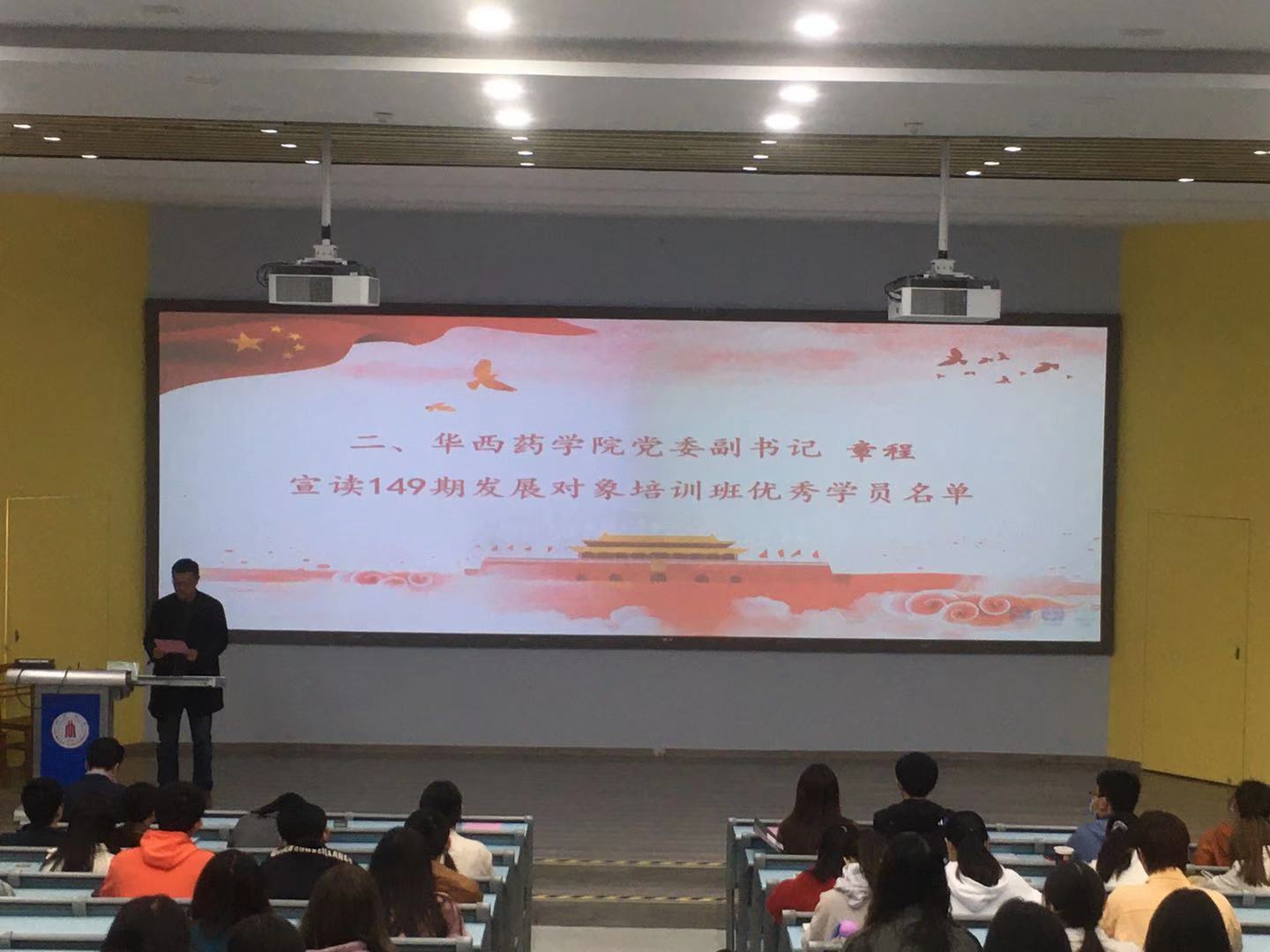 华西药学院党委副书记章程宣读了第149期发展对象培训班优秀学员名单,共18位同学获得“优秀学员”称号。 必赢线路检测3003no1郑亚子、华西口腔医学院梁羽童、华西药学院郝欣岩三位学员分别结合自身实际以及参加此次培训班的学习体会和成果,作了交流发言。他们一致表示,将深刻领会、贯彻落实发展对象培训班的学习成果,在今后的学习和工作中,发挥好先锋模范作用,以实际行动积极向党组织靠拢,争取早日加入中国共产党。