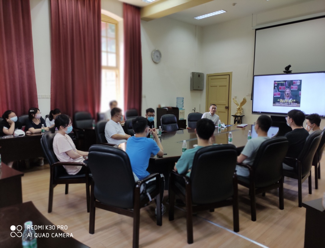 李昌龙书记首先为同学们简要介绍了国际国内形势,对疫情发生以来国家面临的复杂形势做了阐述,随后组织学子们观看了华为孟晚舟事件和国外新冠疫情防控的视频。结合视频李书记论述了在中美贸易摩擦不断演化升级背景下,美国对以华为为代表的我国高新技术企业进行打压的深层次原因,揭示了中华民族走向伟大复兴过程中面临的困难和挑战。