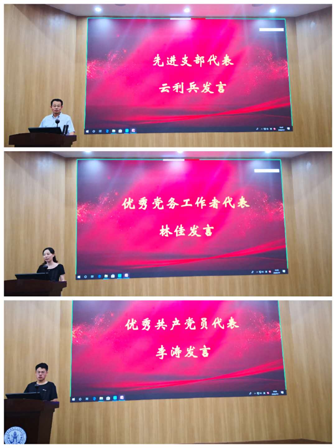 先进党支部代表云利兵老师、优秀党务工作者代表林佳老师、