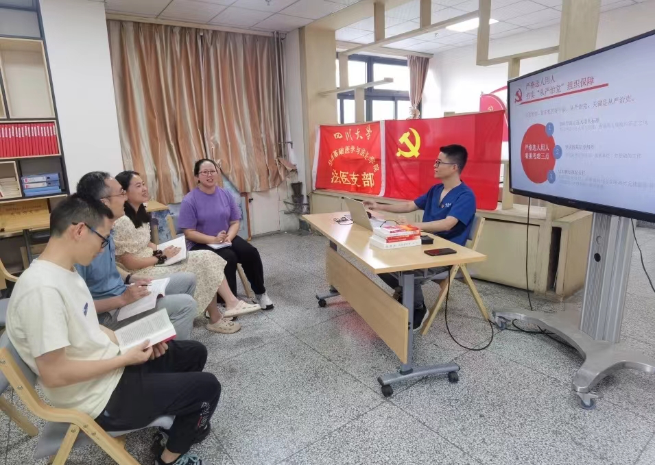 以主题教育为契机,法医党支部坚持集中学习悟透原理、重视调研实践创新工作,继续在推进主题教育工作计划中,切实推动以高质量党建引领学科高质量发展。