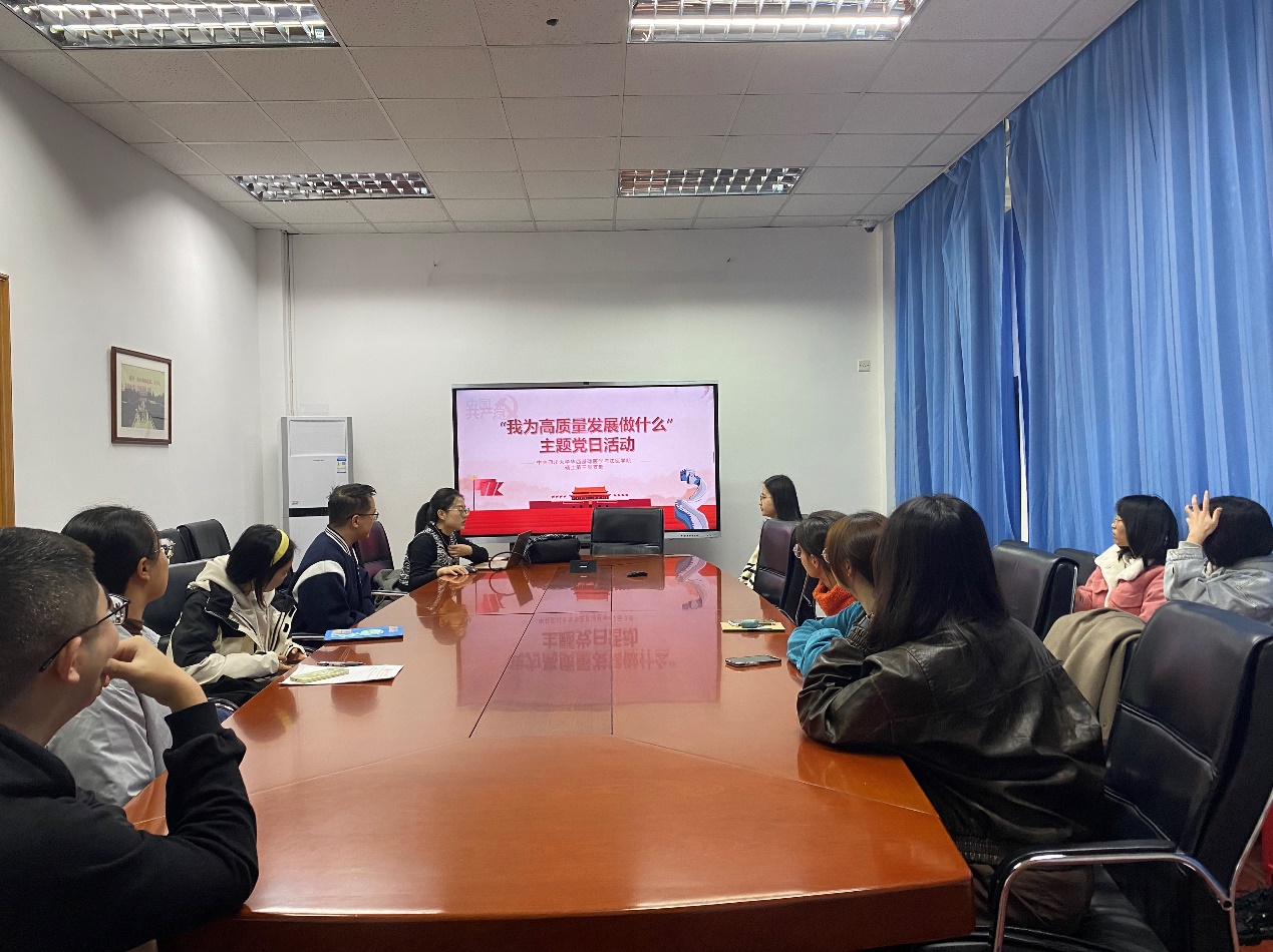 为了深入学习贯彻党的二十大精神和习近平总书记关于建设教育强国的重要论述,传达学校党委九届二次全会和2023年下半年新学期工作布置会的安排部署,教育引导支部的党员同志在推进学院、学校高质量发展中展现新担当新作为,硕士研究生第三党支部于11月16日上午在华西图书馆研讨室举办了“我为高质量发展做什么”的主题党日活动。