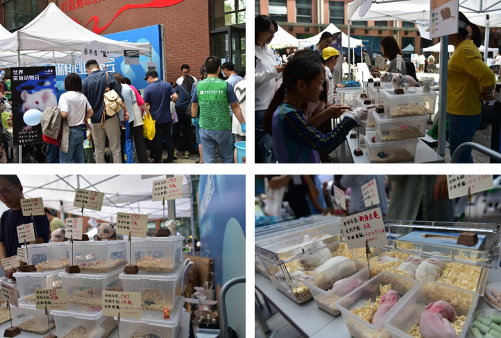 实验动物中心在必赢线路检测3003no1国家大学科技园活动现场搭建了2个展台,通过科普展板向小朋友们普及了实验动物相关知识、做动物实验的重要意义以及如何善待实验动物。并向大家展示了不同日龄的实验小鼠和实验兔,还以精美的展板展示了不同月龄小鼠和不同年龄人类的对应关系。小朋友们通过观察、抚摸等方式近距离感受到了实验动物的神秘。