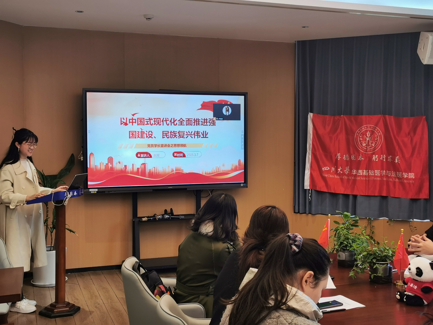 会上进行了会前学习,邀请党员学长赵双以“以中国式现代化全面推进强国建设、民族复兴伟业”为主题,结合自身学习和科研经历,深入浅出地阐述了中国式现代化的内涵与意义,使全体党员进一步明确了自身肩负的历史使命,坚定了为强国建设贡献力量的决心。
