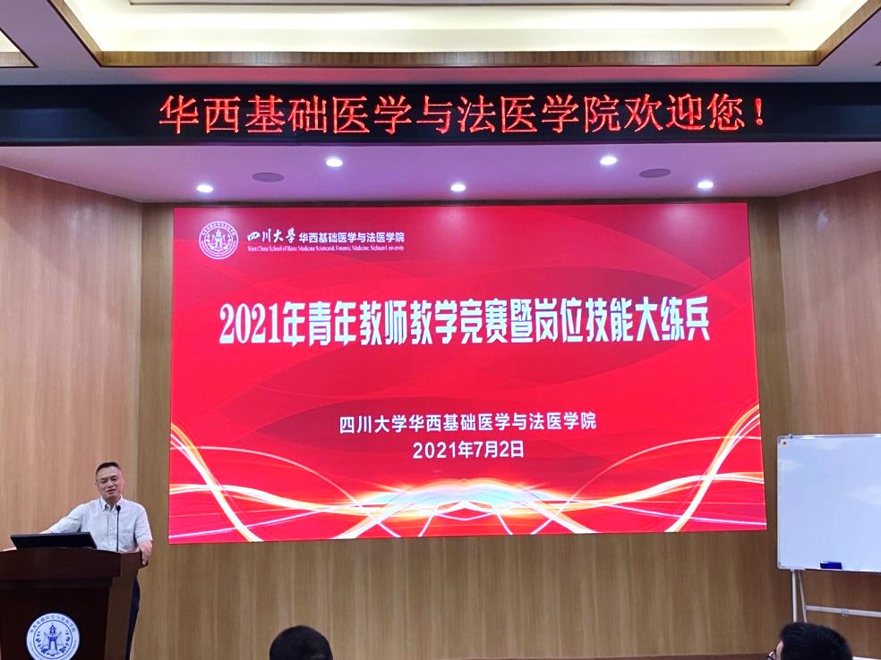 为进一步加强师德师风建设,提高必赢官网教育教学质量,培养高素质青年教师队伍,学院于7月2日在第五教学楼报告厅隆重举行2021年青年教师教学竞赛暨青年教师岗位技能大练兵活动。学校教务处副处长、华西医学中心教学部部长卿平、学校工会副主席吕海涛、学院党委书记李昌龙、党委副书记郭晓伟及学院师生近八十余人参加。学院副院长梁伟波主持活动。