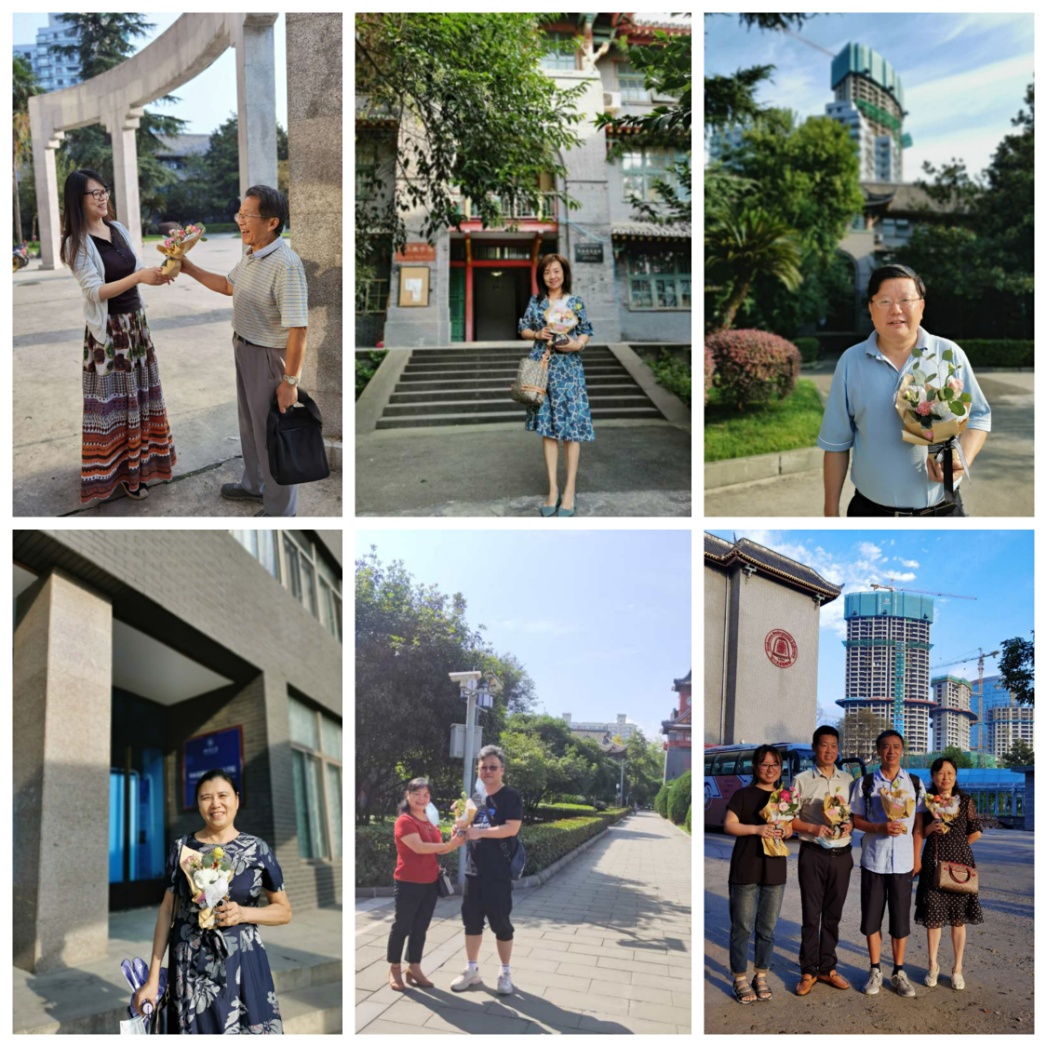 9月10日清晨,学院工会的老师们一早等候在逸夫教学楼、校车站等老师们时常经过的地点,为学院老师送去鲜花及节日祝福。