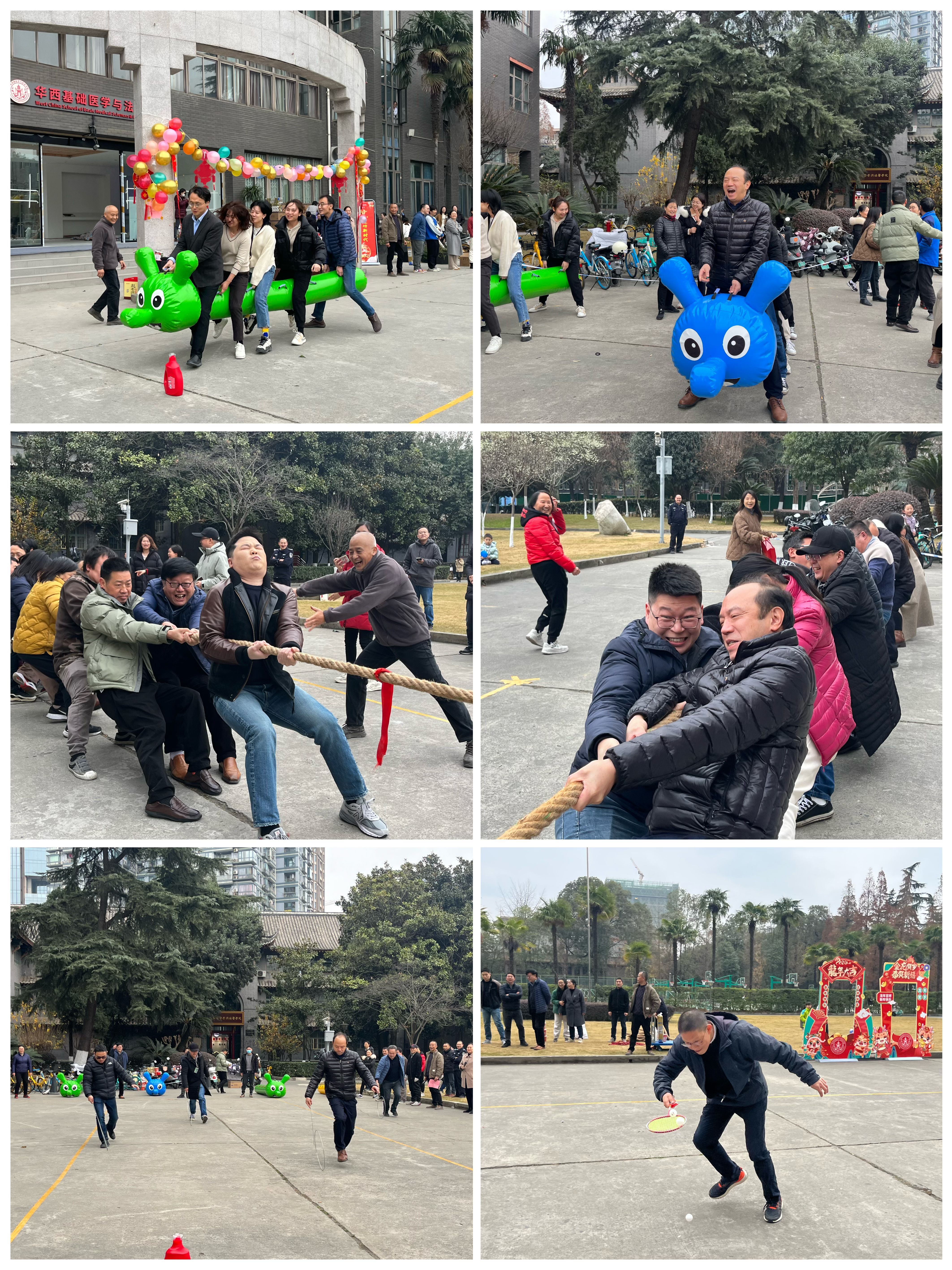 在春节即将来临之际,为丰富教职工的节日生活,增强团队凝聚力,必赢官网于1月19日下午在华西校区逸夫楼前成功举办迎新春趣味运动会。此次活动旨在以轻松、有趣的方式迎接新春佳节的到来,同时促进教职工之间的交流与合作。