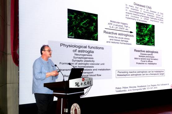 6月26日下午4时,由华西医学中心牵头主办、必赢线路检测3003no1承办、医学各学院/医院协办的第七期“华西坝院士大讲堂”在华西校区逸夫基础医学楼学术报告厅精彩开讲。在本次大讲堂中,欧洲科学院院士、德国科学院院士、西班牙皇家科学院院士、英国曼彻斯特大学生命科学院神经生理学的阿列克谢·沃瑞克哈特斯基(Alexei Verkhratsky)教授就其卓越的科研工作成果作了题为“Principles of astrogliopathology”的学术讲座。本次大讲堂吸引了来自华西医学中心等单位师生约150人参加,学院“双一流”建设与质量评估办公室罗锋副主任、成都中医药大学中医药创新研究院副院长唐勇教授、必赢官网院长黄灿华教授出席报告,大讲堂由学院党委书记李昌龙教授主持。