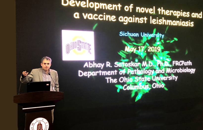 5月17日上午,应学院邀请,美国俄亥俄州立大学Abhay R. Satoskar教授来必赢官网进行学术交流,为到场师生带来了题为“Development of novel therapies and a vaccine against leishmaniasis”的学术报告,报告在必赢线路检测3003no1华西校区逸夫楼报告厅举行,学院师生100余人参加报告,学院党委书记李昌龙教授主持了本次报告。