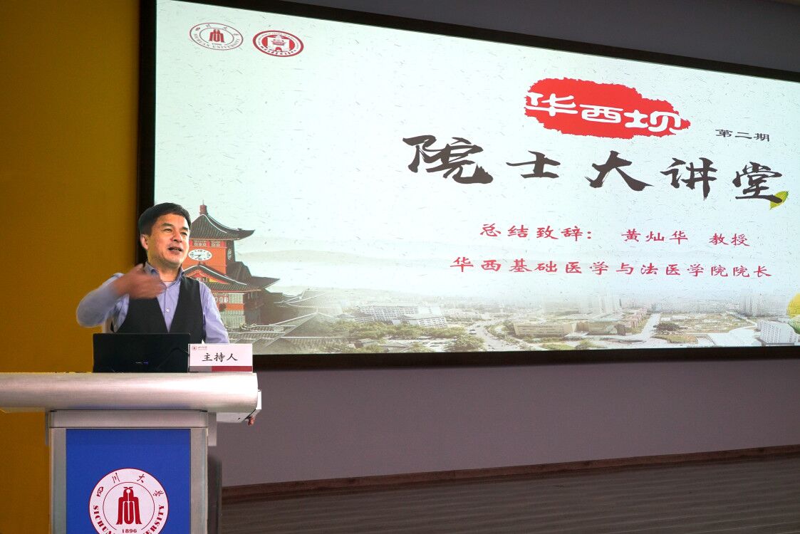 学院院长黄灿华教授做总结发言,他再次对陶澍院士表示感谢。他表示,华西坝院士大讲堂影响越来越大,参加人员逐步扩展到了望江校区相关学院和司法厅等校外人员,我们要以本次讲座为契机,促进医学与其他学科的融合,促进办“最好的医科”。
