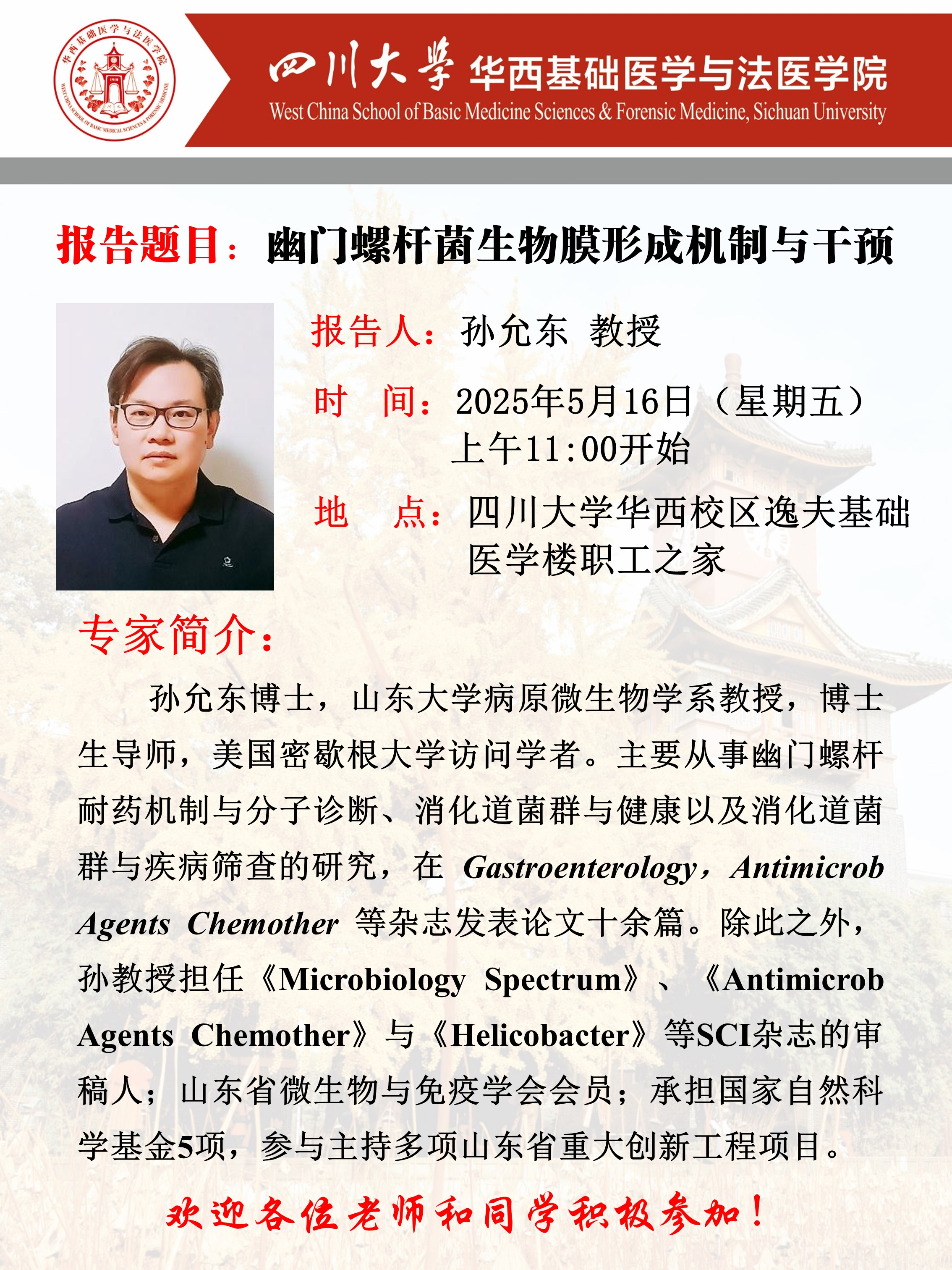学术报告:幽门螺杆菌生物膜形成机制与干预