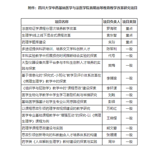 院级教学改革项目立项公示