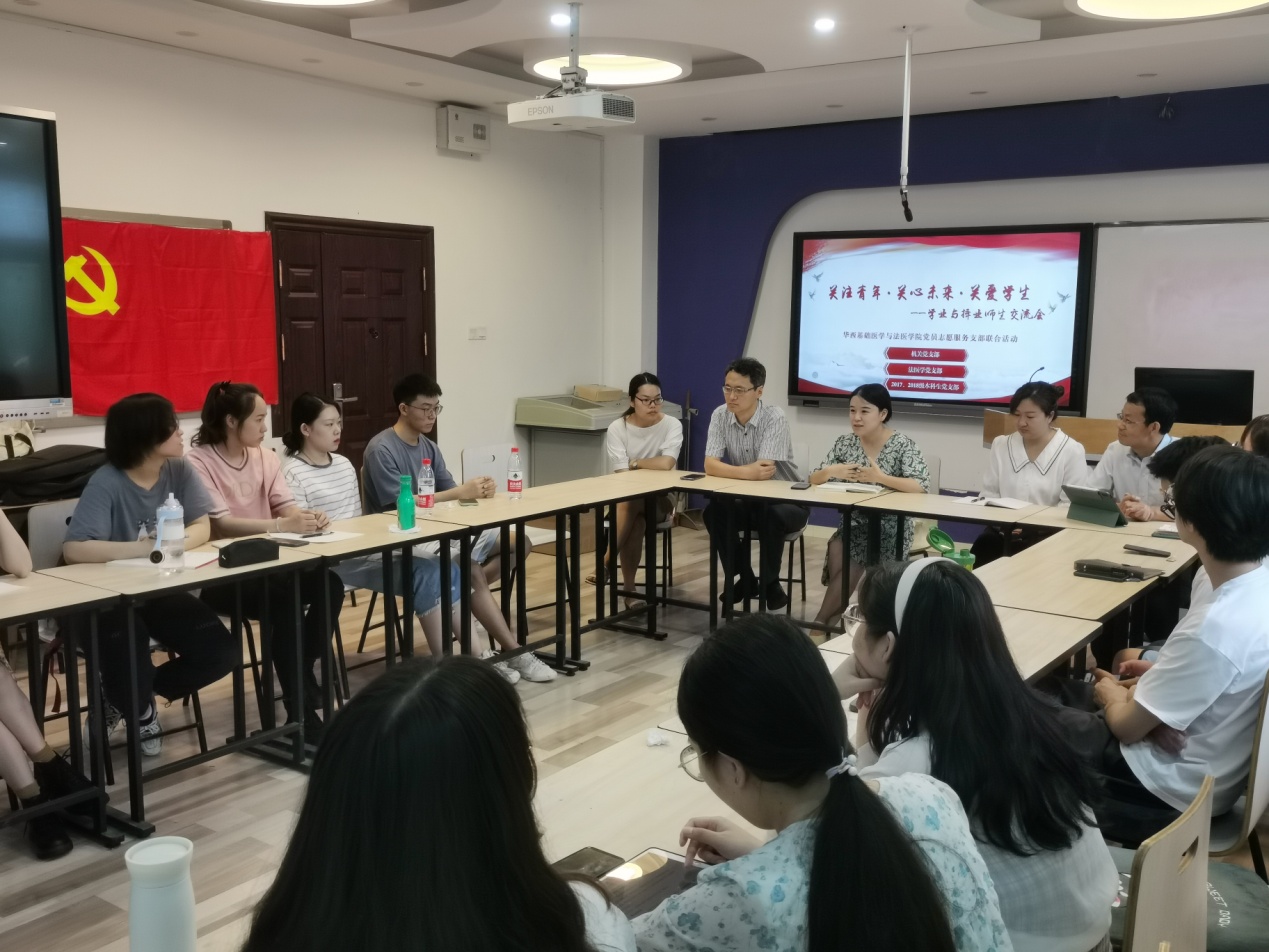 2021年7月5日,由必赢线路检测3003no1党委机关党支部、法医学党支部、2017/2018级本科生党支部联合组织的 “关爱青年 关爱未来 关爱学生——学业与择业师生交流会”在华西法医楼三楼教室举办。活动由法医学党支部书记云利兵老师主持,参加本次活动的有机关党支部代表蒋宝晴老师、郑风劲老师、青思含老师、樊梅老师,学院优秀研究生与本科生毕业代表以及2017级法医学专业本科生。