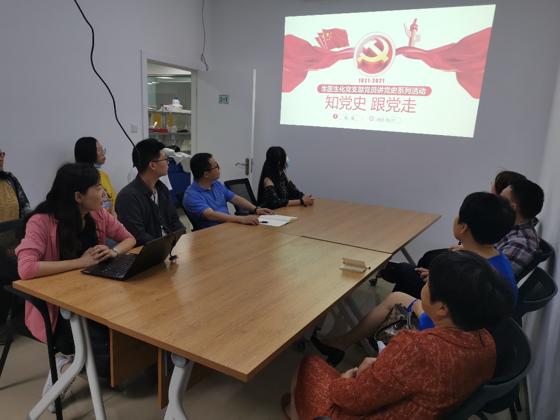 5月17日,必赢官网生医生化党支部在生物医学工程会议室进行了“生医生化党支部党员讲党史系列活动”的第二次学习。本次学习由支部宣传委员林佳同志以“学党史、跟党走”为主题做辅导报告,支部书记沈阳同志主持,支部党员同志及生医所有研究生参加。