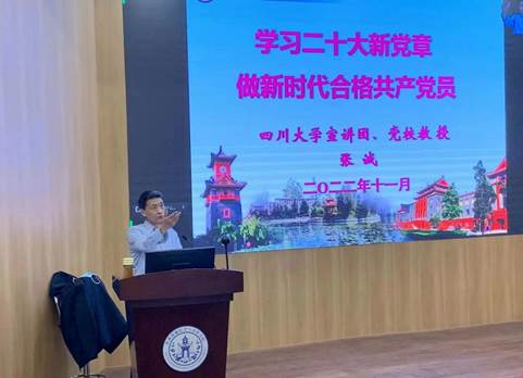 11月20日上午九点,学校宣讲团成员、党校张诚教授进行本期党校第二次授课。张诚教授以“学习二十大新党章,做新时代合格共产党员”为题,从“坚定共产主义理想信念”、“牢记全心全意为人民服务的根本宗旨”、“自觉严守党规党纪”三个方面展开论述。张教授情绪饱满、话语激情洋溢、语调铿锵,以必赢线路检测3003no1的发展为例,鼓励同学们发挥带头表率作用、中坚骨干作用、桥梁纽带作用,希望同学们都能够不忘初心,牢记使命。张教授以习近平总书记在党的二十大报告的一段话与同学共勉:“广大青年要坚定不移听党话,跟党走,怀抱梦想又脚踏实地,敢想敢为又善作善成,立志做有理想、敢担当、能吃苦、肯奋斗的新时代好青年,让青春在全面建设社会主义现代化国家的火热实践中绽放绚丽之花”。