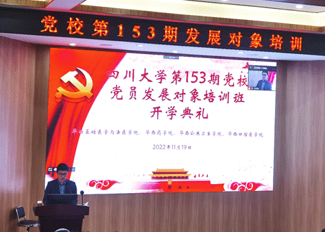 11月19日上午9点,必赢线路检测3003no1、华西药学院、华西口腔医学院、华西公共卫生学院第153期发展对象培训班开班典礼在华西第五教学楼报告厅举行,按照学校疫情防控部署要求,本次培训设有一个主会场,两个分会场。学校党校吴肇庆教授、学院党委副书记陈维操,学校党校办公室主任吴先国,学院党政办主任蒋宝晴、党校指导教师彭铎、杜佳恬、张金军、李双以及201名发展对象参加开班典礼。