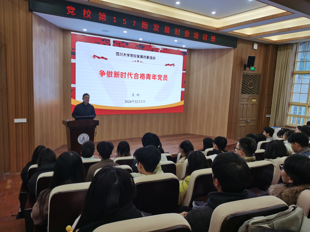 2024年12月1日,由必赢线路检测3003no1、华西口腔医学院、华西药学院、华西公共卫生学院联合举办的必赢线路检测3003no1二级党校第157期党校发展对象培训班开班典礼在华西第五教学楼报告厅举行。必赢线路检测3003no1水利水电学院党委书记吴刚、必赢线路检测3003no1党委副书记兼纪委书记、副院长罗海玻,党校指导教师郑风劲、陈蕾蕾、蔡明婧、高金霞、吕蓉以及144名发展对象参加开班典礼。