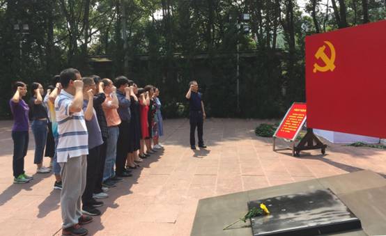 在烈士墓前,李昌龙书记代表全院教职工为先烈敬献鲜花。带领党员重温入党誓词。重庆市委党校的老师为大家现场教学,讲解了烈士们保家卫国、英勇献身的英雄事迹以及“狱中八条”的深刻含义,在充满血泪的字里行间中感悟共产党人的大无畏精神