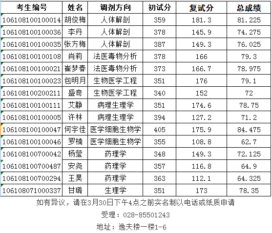 如有异议,请在3月22日下午5点之前实名制以电话或纸质申请 受理:028-85501305 地址:逸夫楼一楼1-3